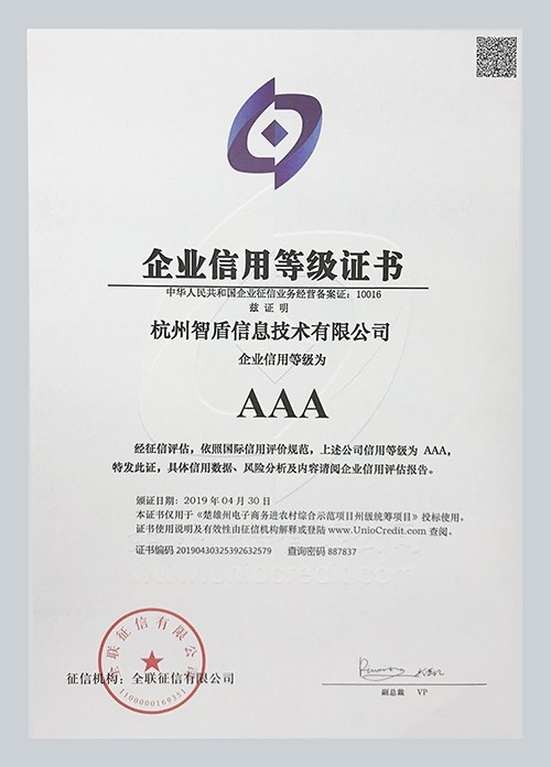 企業(yè)信用等級(jí)AAA